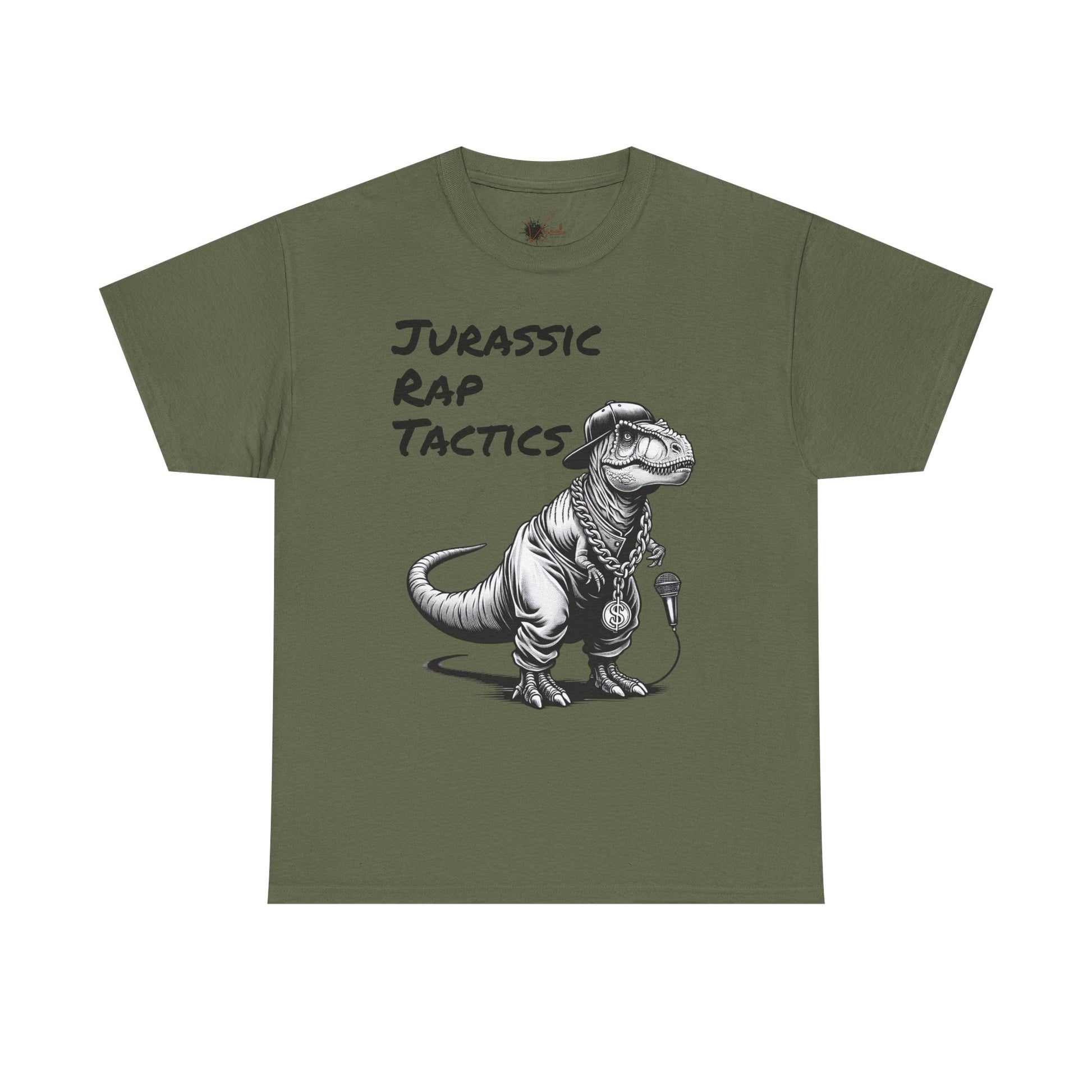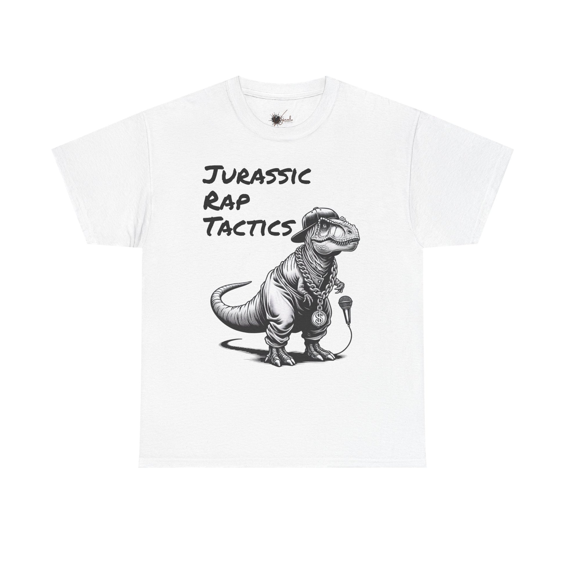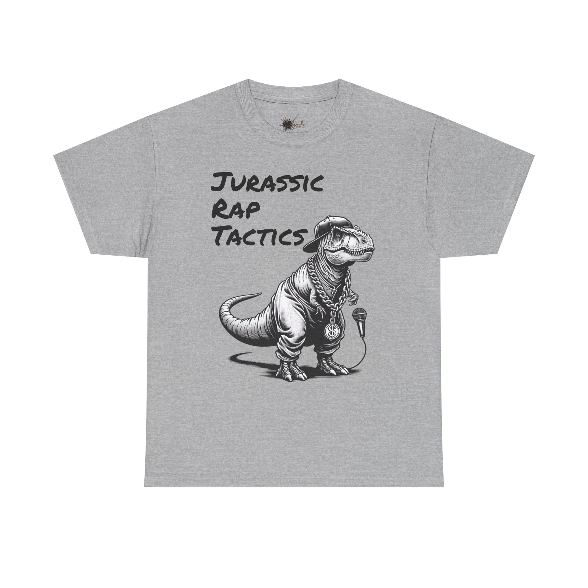Jurrasic Rap Tactics Tee - Unisex Heavy Cotton T-Shirt - Fun Dino Graphic Tee for Music Lovers