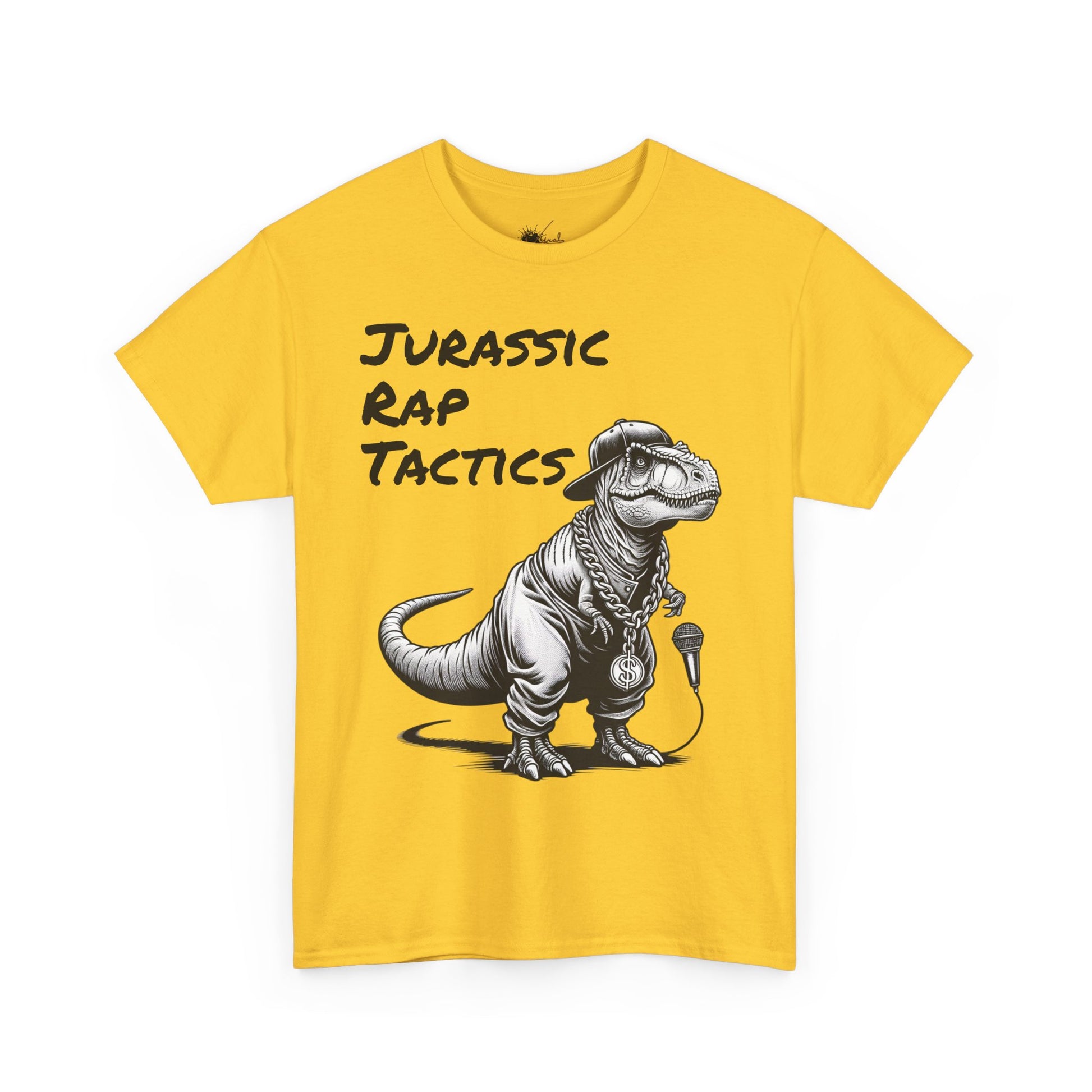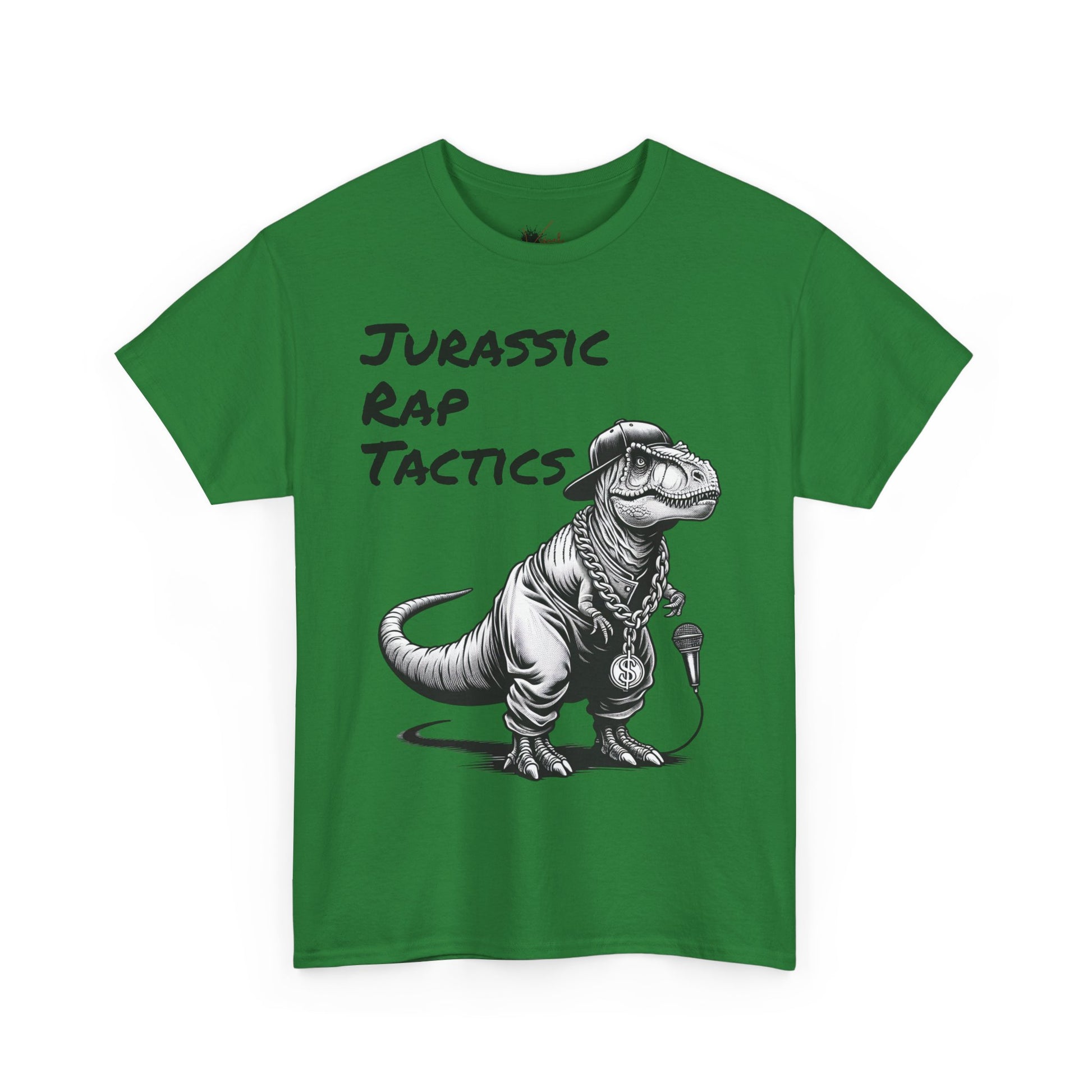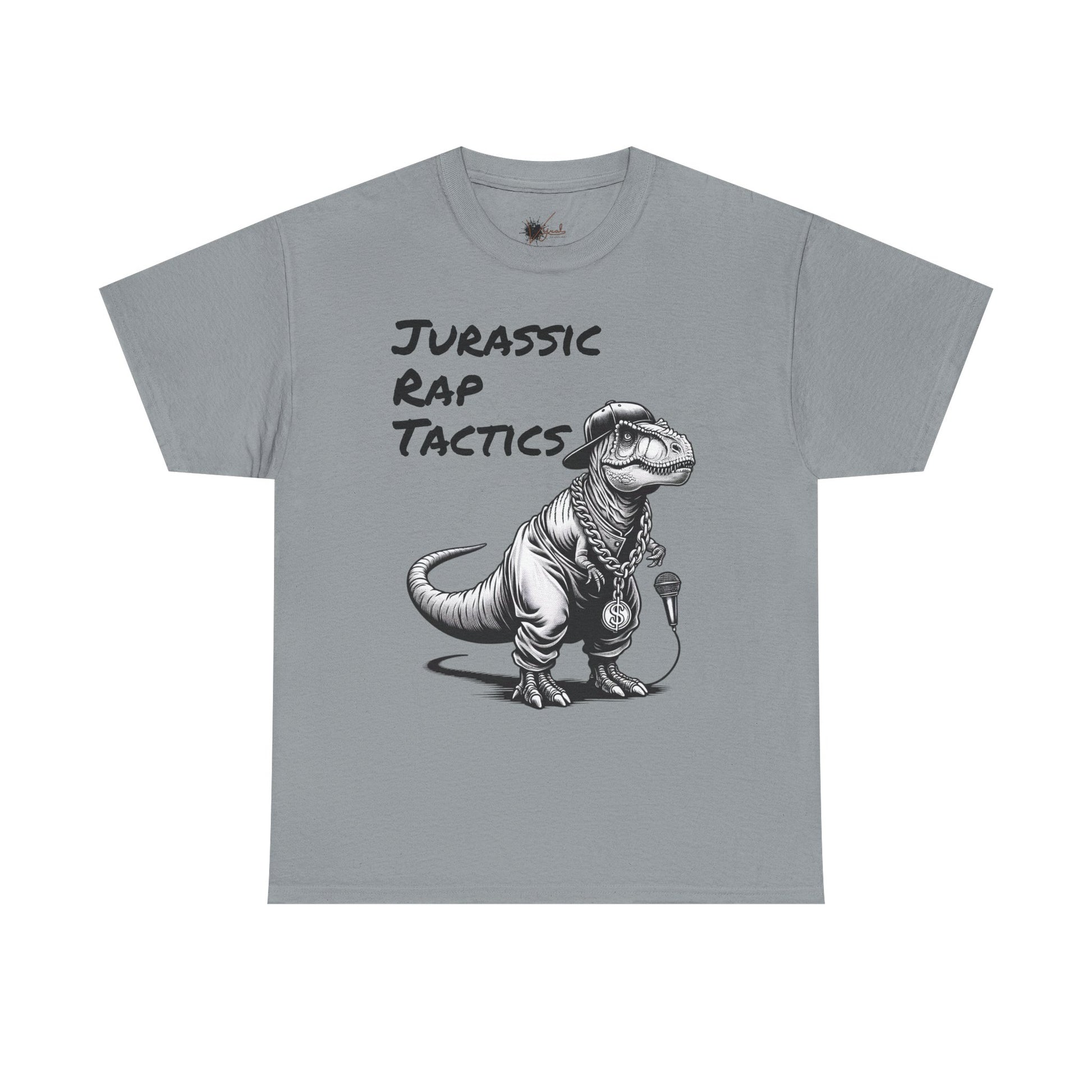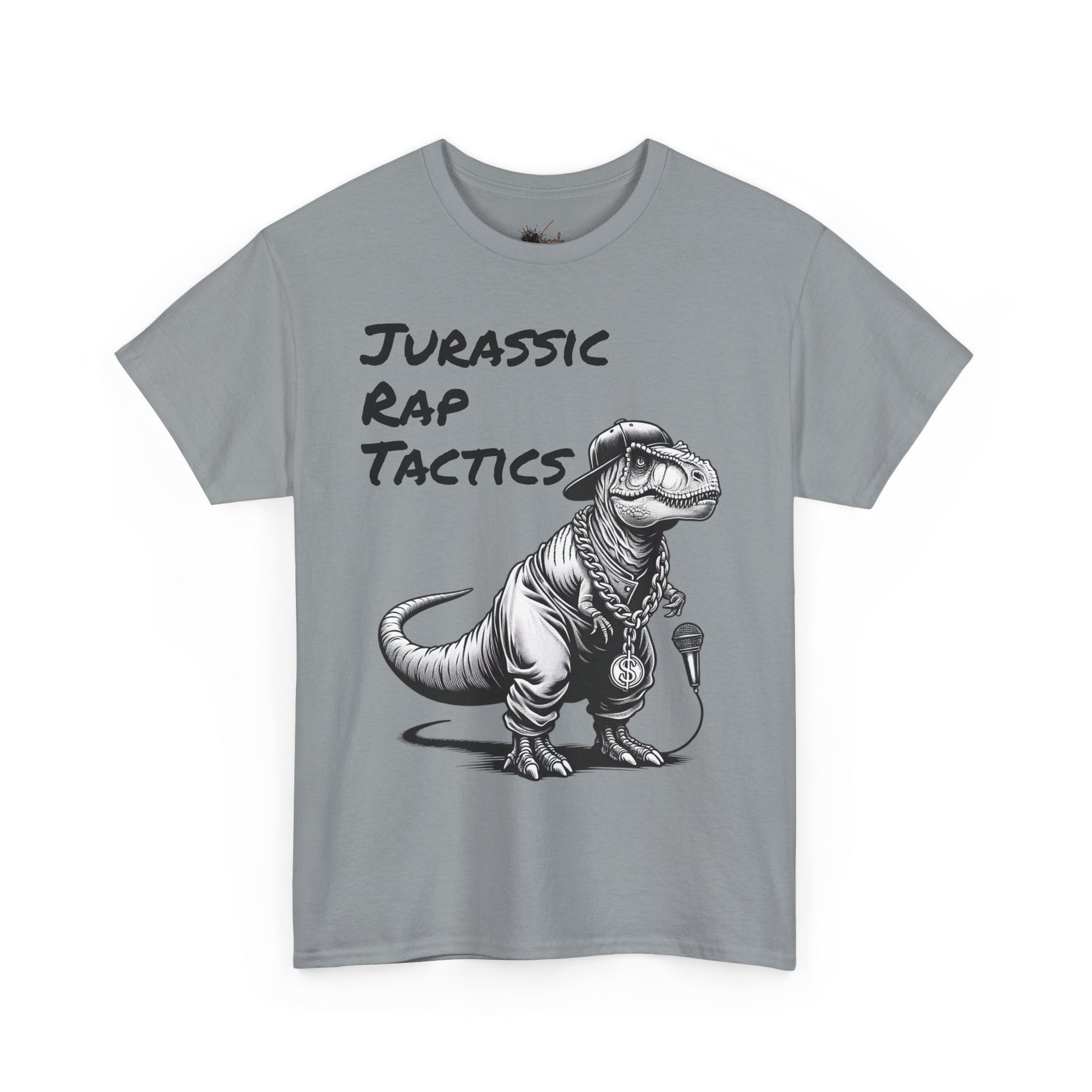 Jurrasic Rap Tactics Tee - Unisex Heavy Cotton T-Shirt - Fun Dino Graphic Tee for Music Lovers